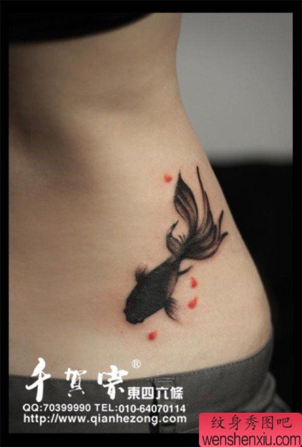 美女腰部时尚时尚的写意小金鱼纹身图案