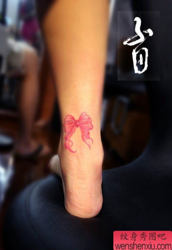 女生腿腕小巧时尚的蝴蝶结纹身图案