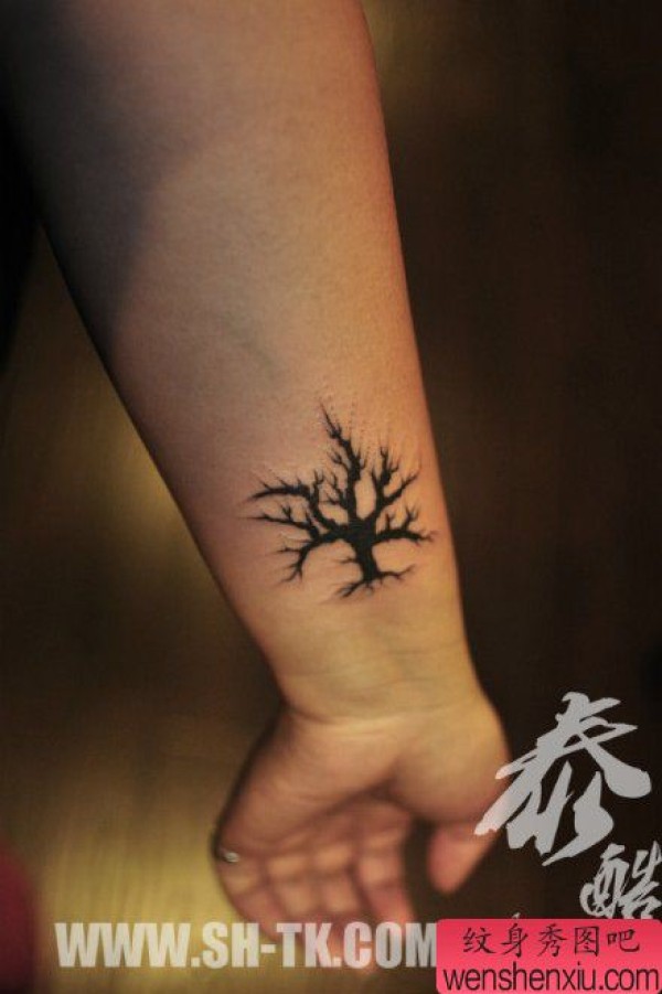 女生手腕小巧时尚的图腾树纹身图案