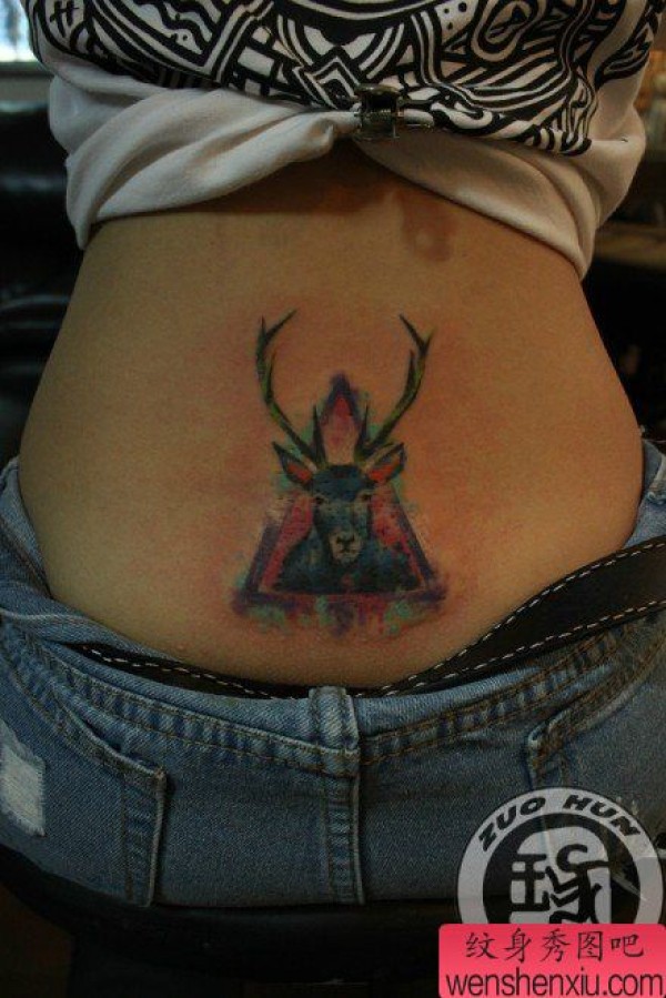 美女后腰时尚时尚的彩色小鹿纹身图案