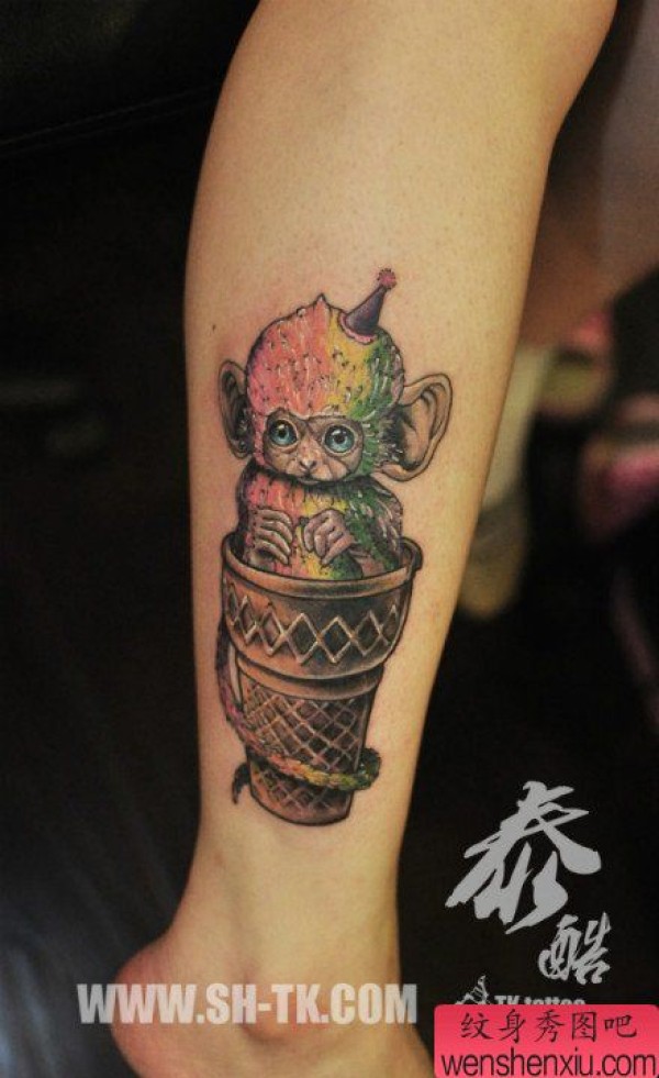 腿部可爱时尚的小猴子纹身图案