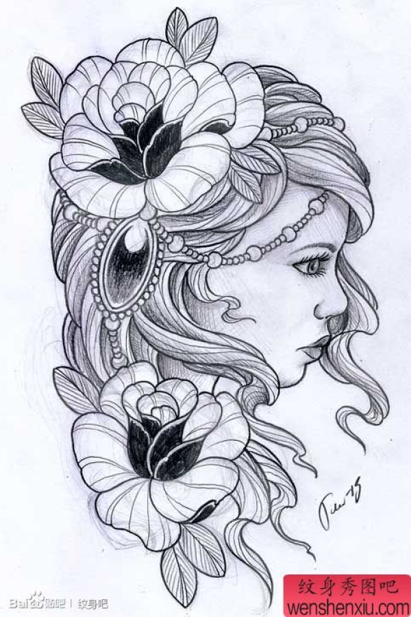 一张漂亮时尚的欧美美女纹身手稿