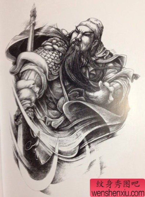 一张很酷帅气的关公纹身手稿