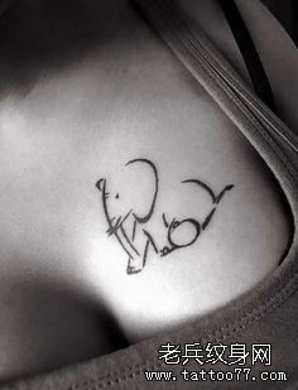美女胸部时尚经典的图腾大象纹身图案