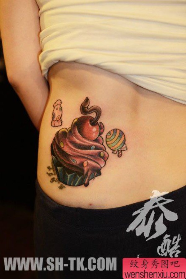 美女腰部时尚时尚的糖果与冰激凌纹身图案