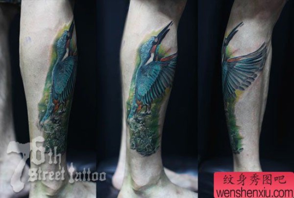 腿部时尚时尚的彩色小鸟纹身图案