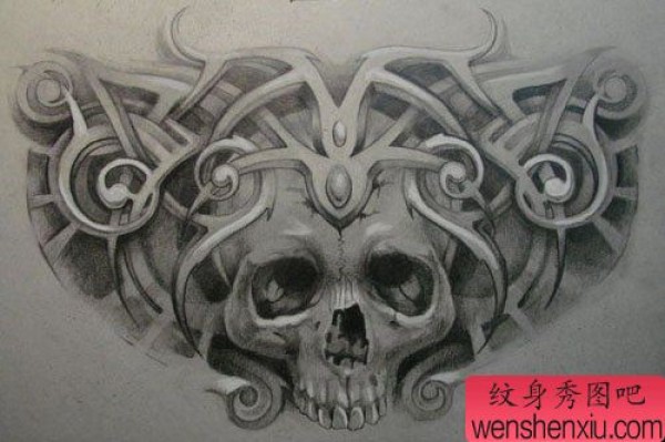 适合纹前胸和后背的骷髅纹身手稿