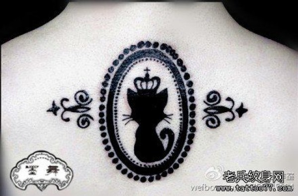 女生后背唯美时尚的图腾猫咪纹身图案
