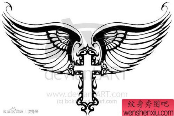 时尚时尚的一张图腾十字架翅膀纹身图案