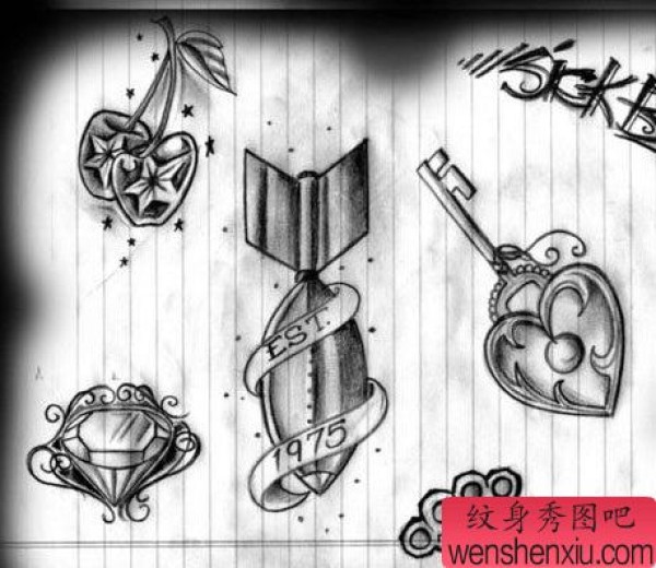 双鱼座纹身手稿_45张十二星座之双鱼手稿纹身图案