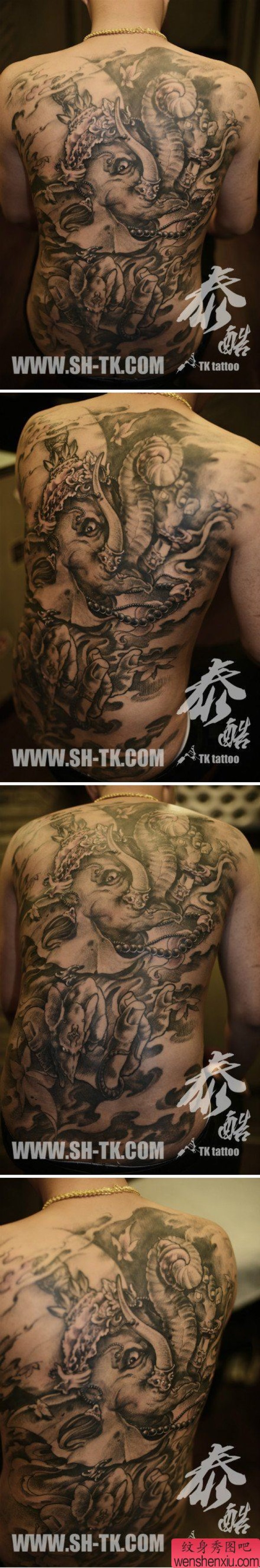 后背超酷经典的满背象神纹身图案