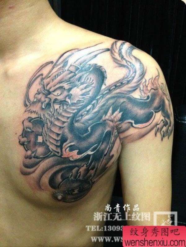 龙纹身手稿_一组老传统黑灰龙手稿纹身图案
