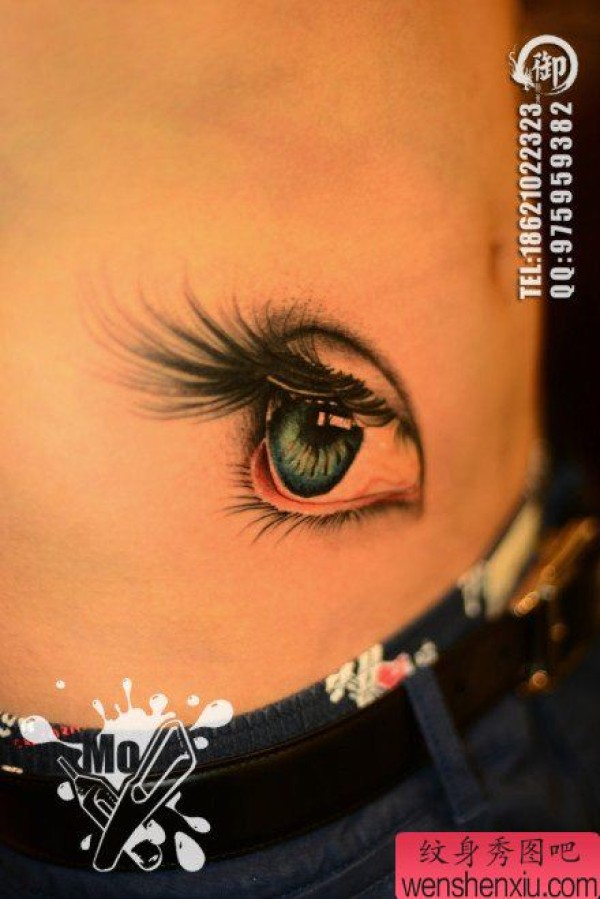 男生腹部时尚精美的彩色眼睛纹身图案