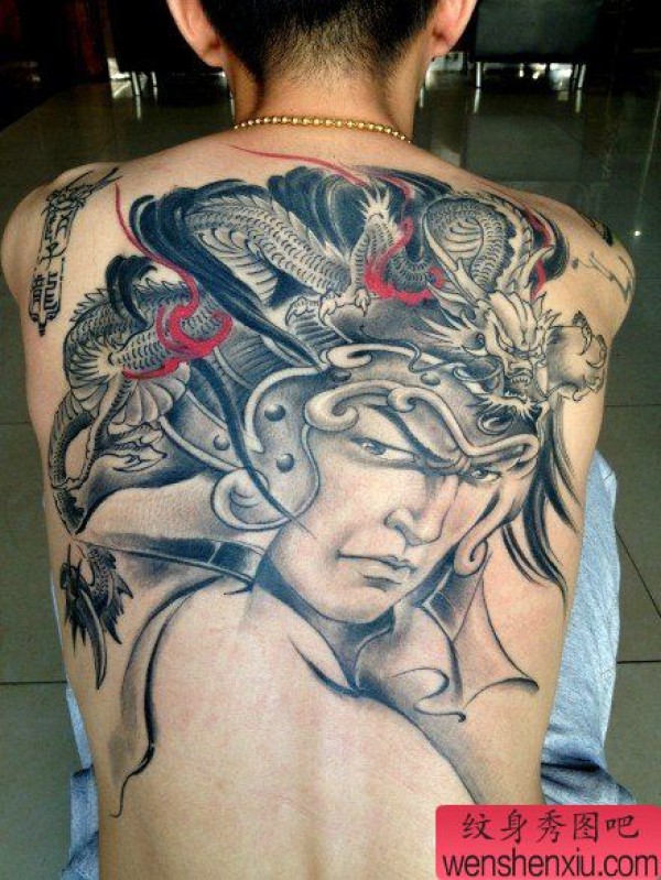 男士后背很酷帅气的赵云赵子龙纹身图案