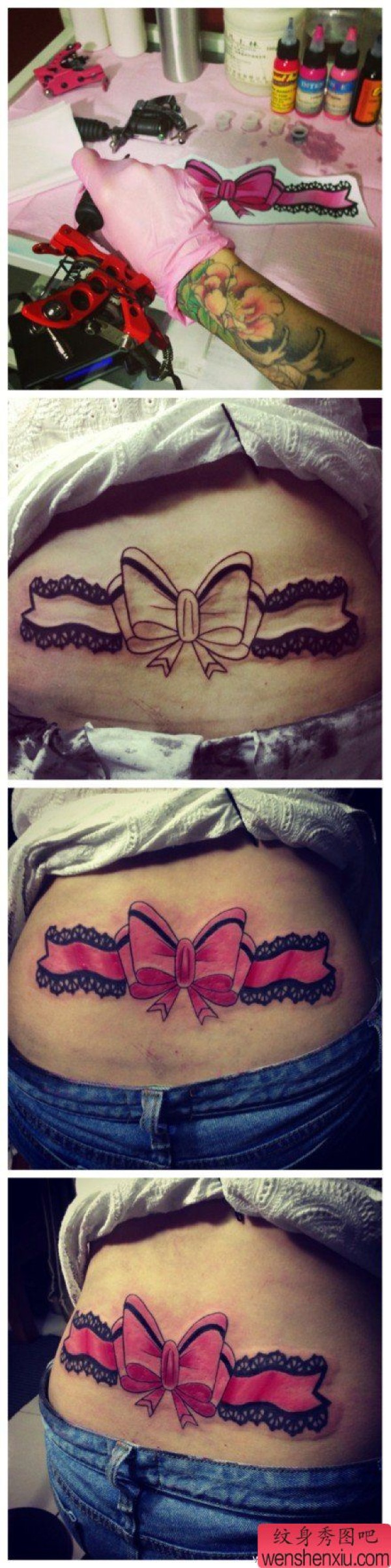 美女腰部精美时尚的蝴蝶结蕾丝纹身图案