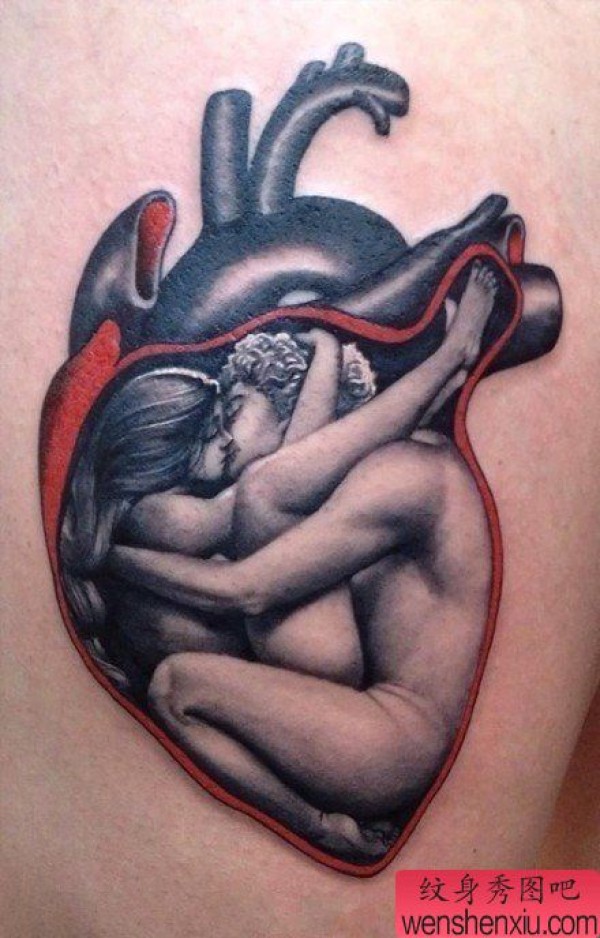 腿部经典另类的一张心脏纹身图案