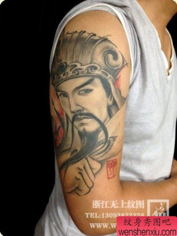 男士手臂一张经典帅气的诸葛亮纹身图案