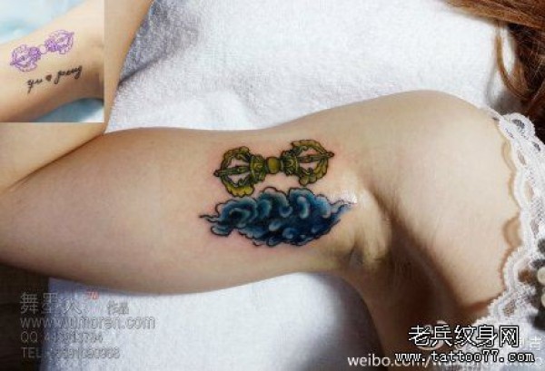 女生手臂内侧小巧的金刚杵与云纹身图案