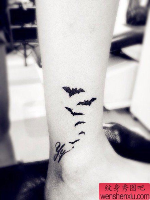 腿部时尚时尚的一张图腾蝙蝠纹身图案