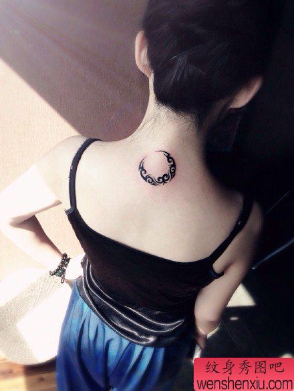 女生后脖子唯美时尚的图腾月亮纹身图案