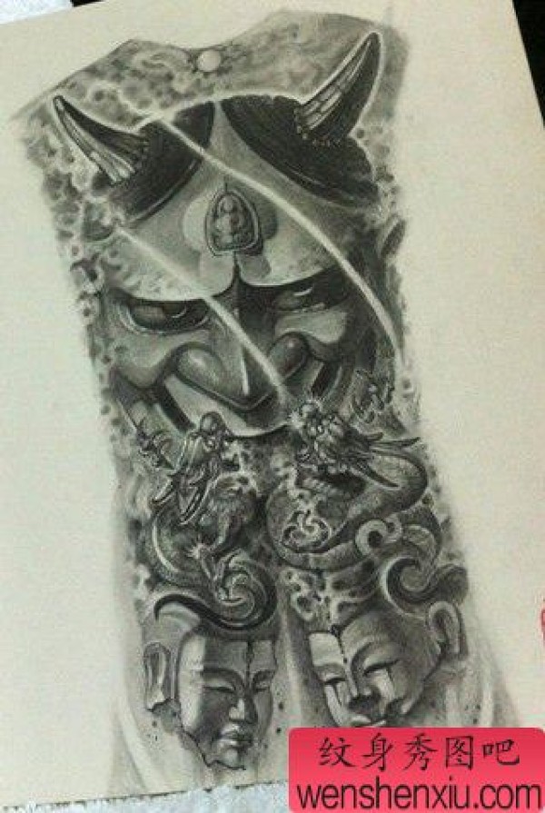 能面万媚纹身手稿_52张日式能剧面具纹身手稿图案素材欣赏