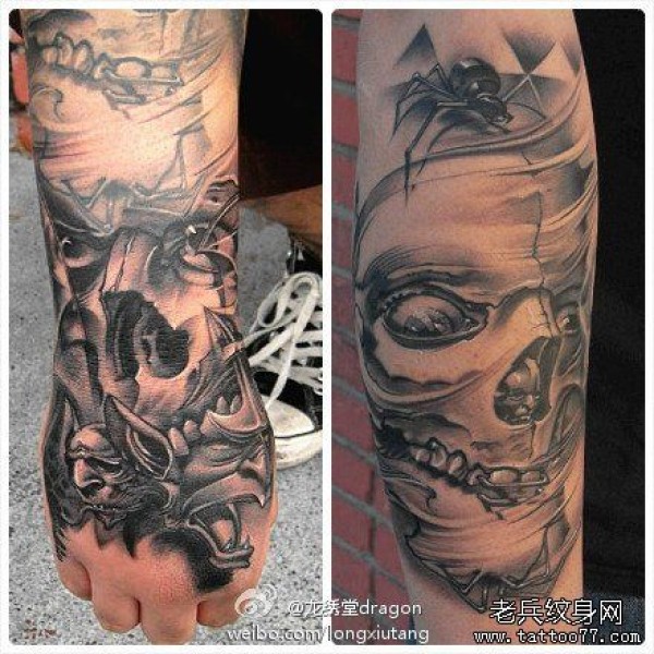 手背手臂时尚很酷的欧美骷髅纹身图案