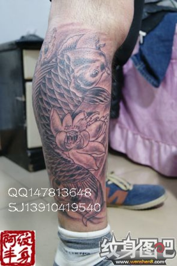 鱼纹身。小腿纹身#角门地铁附近纹身店#