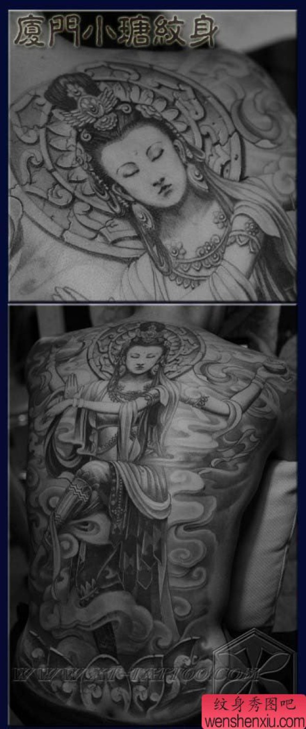 经典时尚的一张满背敦煌飞天纹身图案