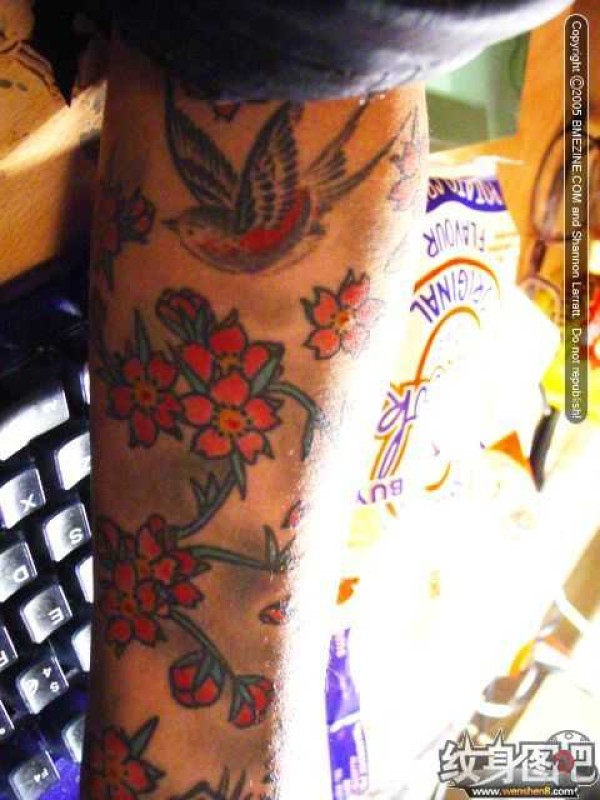 色彩鲜艳的花鸟纹身