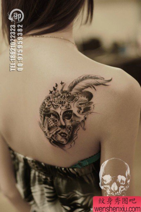 美女肩背时尚时尚的威尼斯面具纹身图案