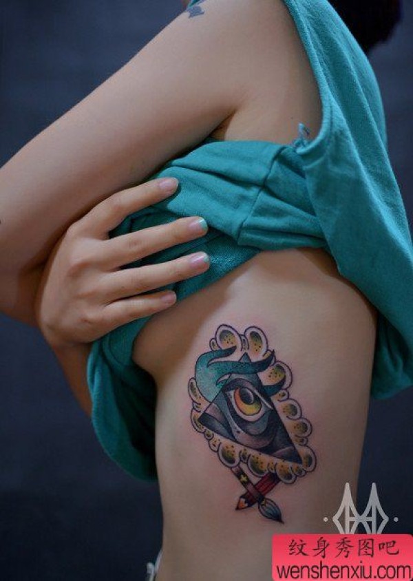 美女侧腰精美时尚的上帝之眼纹身图案