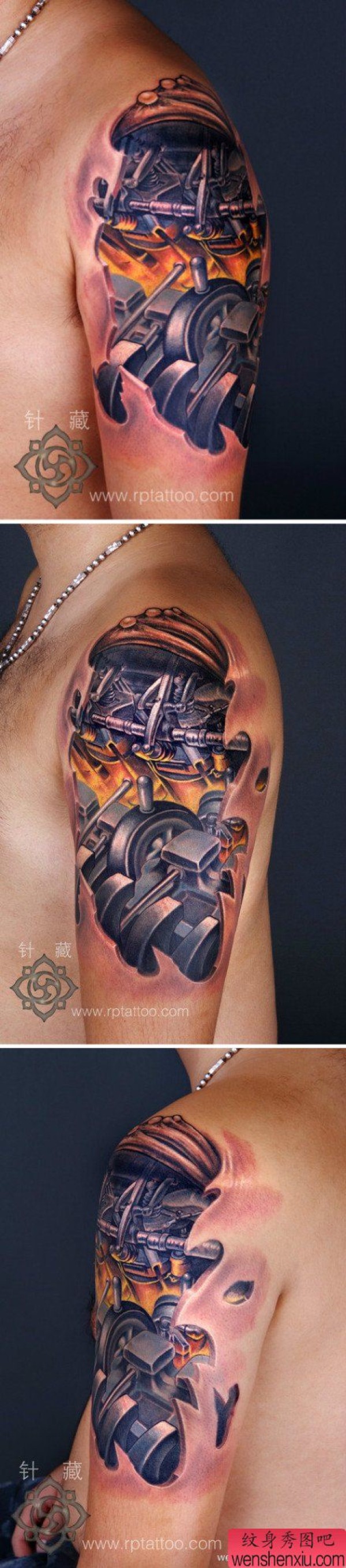 手臂超帅很酷的机械纹身图案