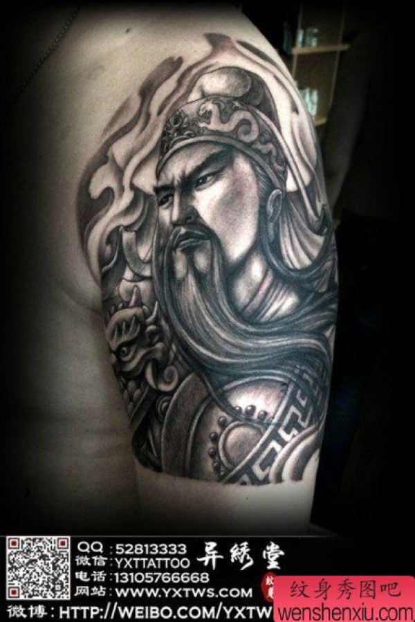 手臂超帅经典的关公纹身图案