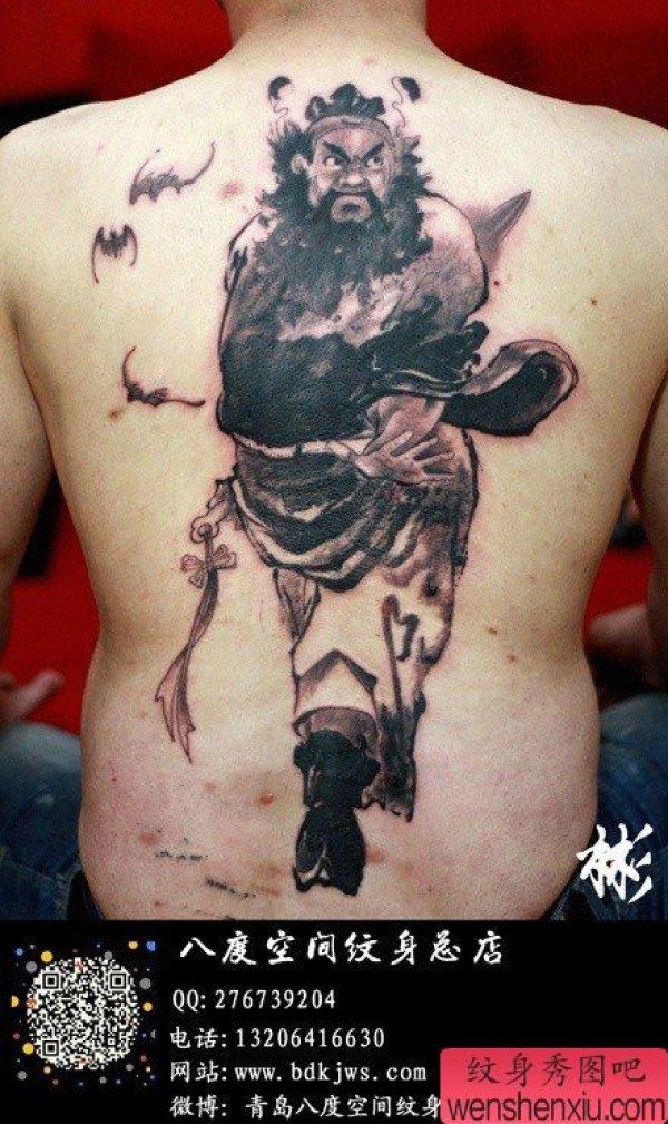 男士后背超霸气的水墨风格的满背钟馗纹身图案