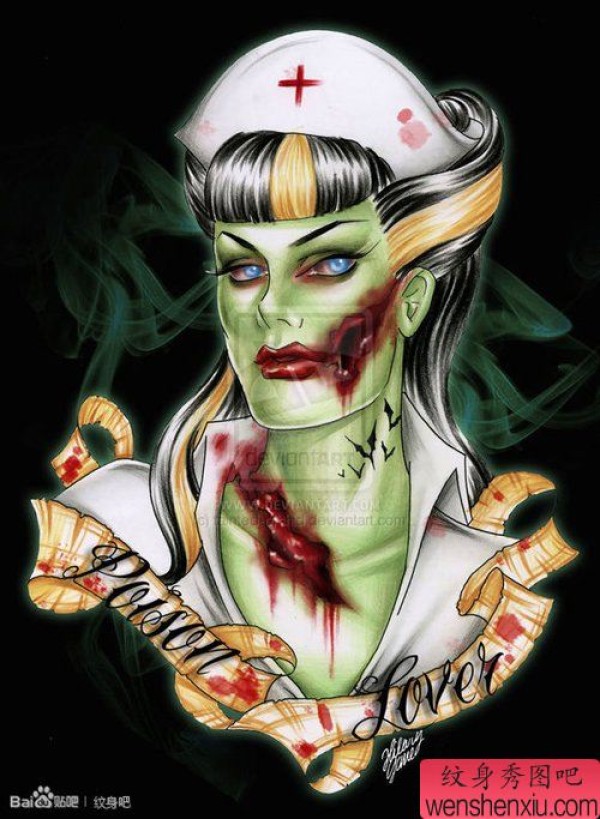 一张很酷的僵尸美女纹身图案