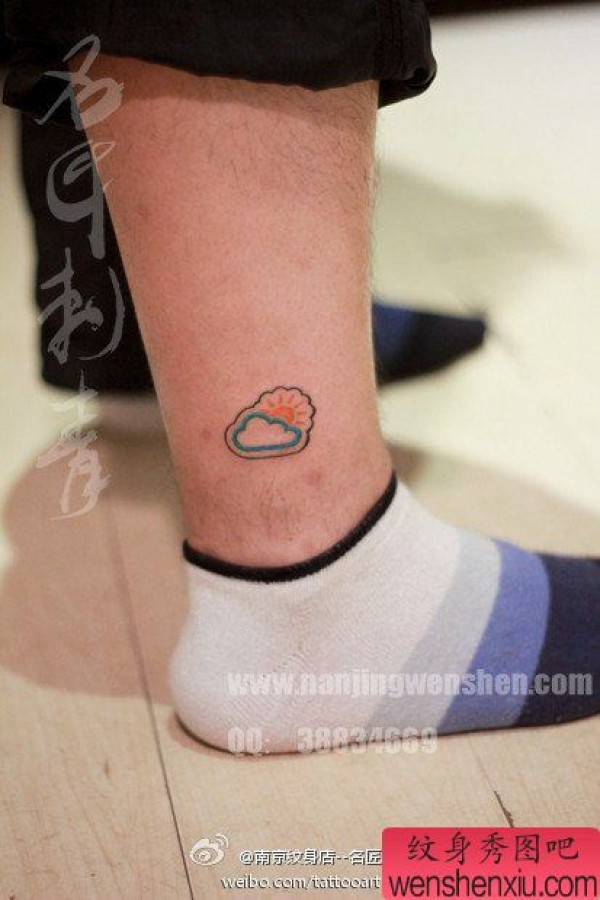 腿部时尚经典的小太阳纹身图案