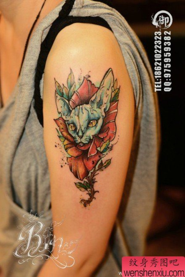 女生手臂时尚时尚的猫咪纹身图案