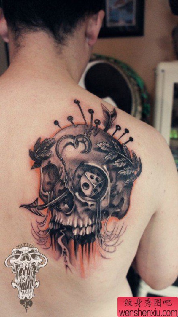 男士肩背时尚很酷的骷髅纹身图案