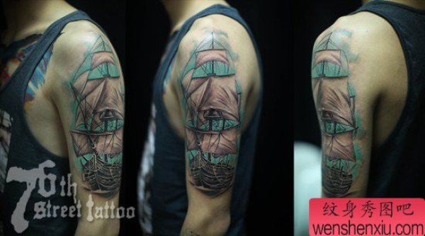 手臂时尚时尚的一张帆船纹身图案