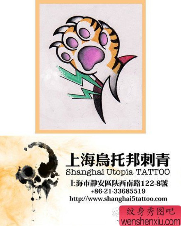 一张时尚的小虎爪纹身手稿