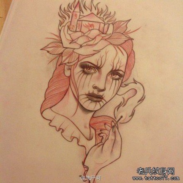 能面万媚纹身手稿_52张日式能剧面具纹身手稿图案素材欣赏