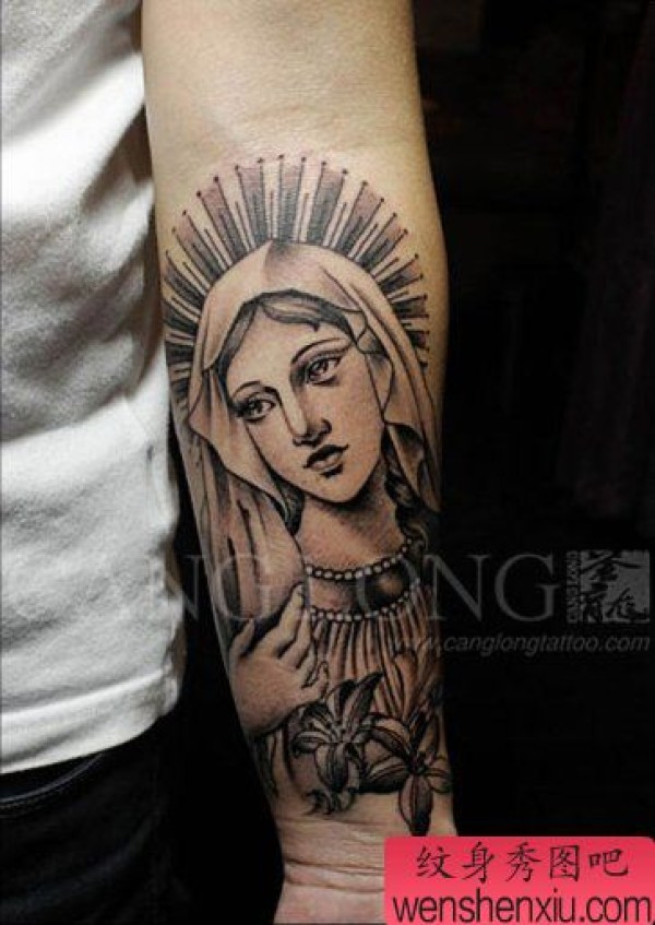 手臂时尚时尚的一张圣母玛利亚纹身图案
