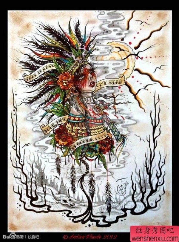 一张时尚很酷的school部落美女纹身手稿
