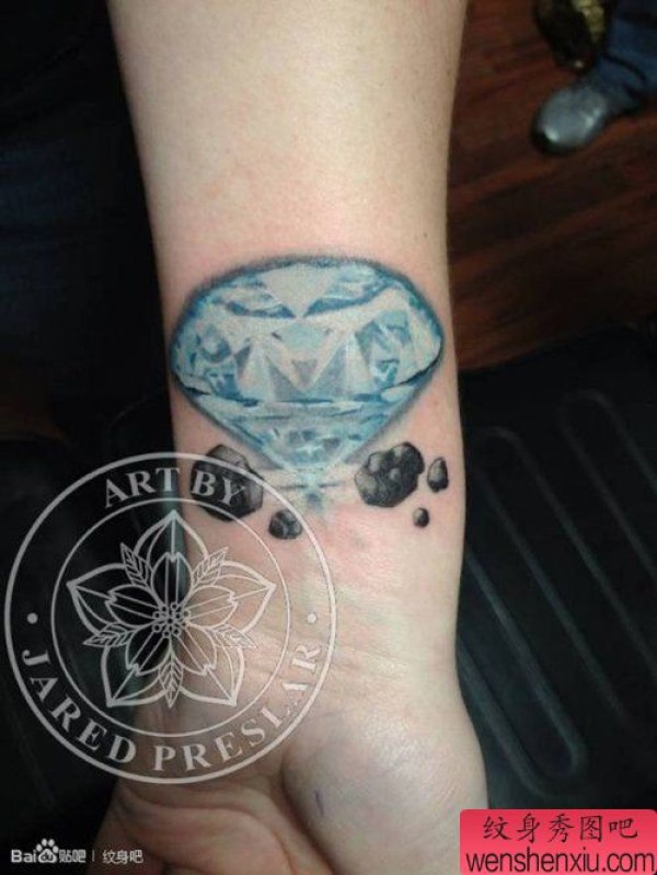 小巧时尚的彩色小钻石纹身图案