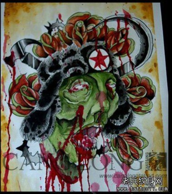 一张另类很酷的僵尸纹身手稿