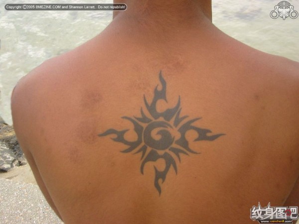 后背菱形黑色图腾纹身
