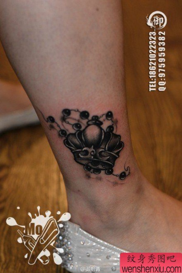 小腿时尚时尚的黑白皇冠纹身图案