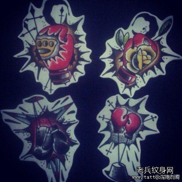 时尚时尚的一套拳套纹身手稿