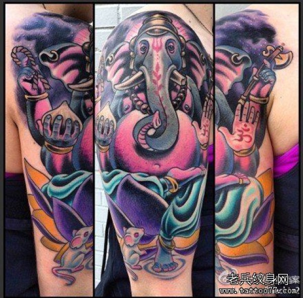 手臂很酷经典的欧美象神纹身图案