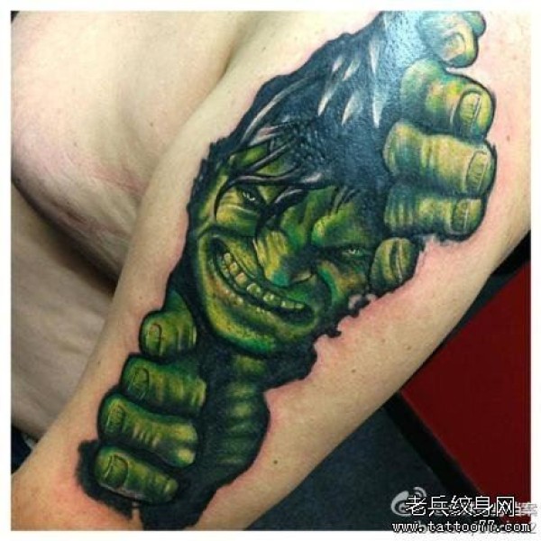 手臂很酷经典的一张绿巨人纹身图案
